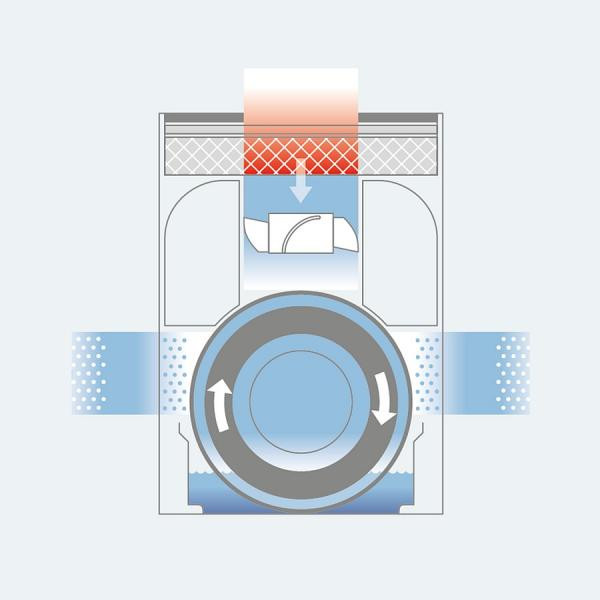 Egy üvegszálas textil nedvesítő-szűrő gondoskodik a ventilátor segítségével a víz párává alakításáról, a helyiség párásításáról. A nedvesítő-szűrő mosógépben mosható, hosszú élettartamú, így sem a pénztárcáját, sem a környezetet nem terheli.