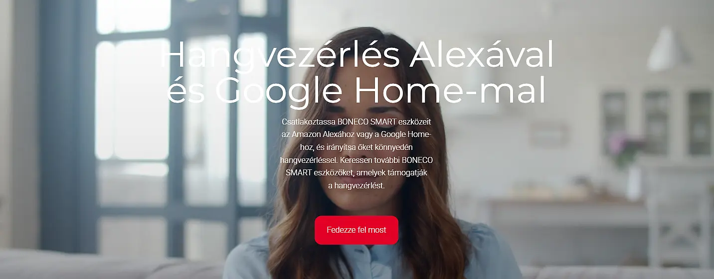 A BONECO SMART alkalmazás lehetővé teszi az Amazon Alexa és a Google Home csatlakoztatását hangvezérléshez.