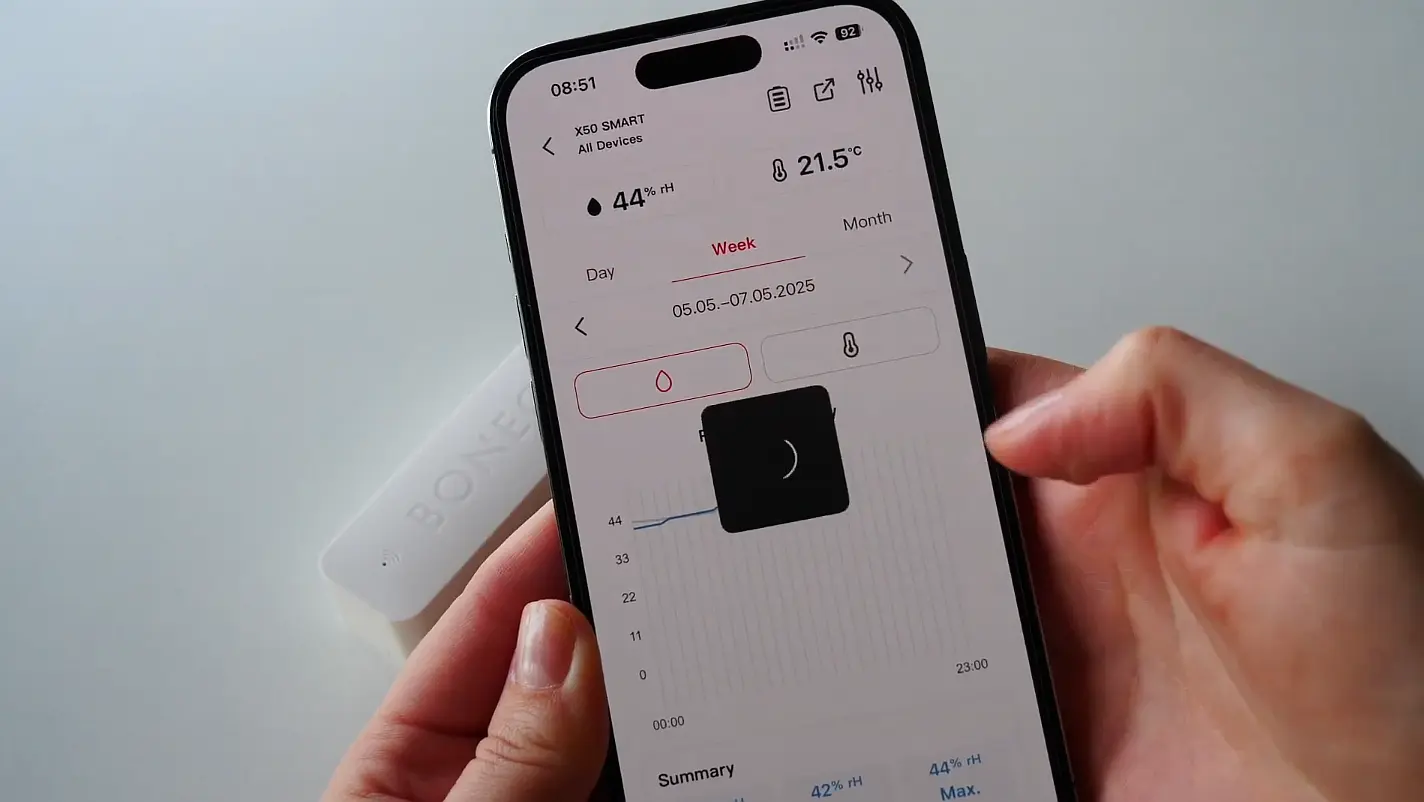 A Boneco X50 SMART érzékelő valós időben figyeli a levegő minőségét, és egészséges, ideális klímát biztosít az Ön számára.