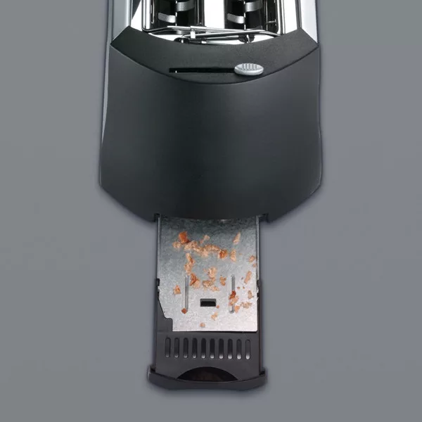 Az alján morzsagyűjtő található, ami a tisztítást könnyíti. Csak ki kell húzni, s kiönteni belőle a morzsát.