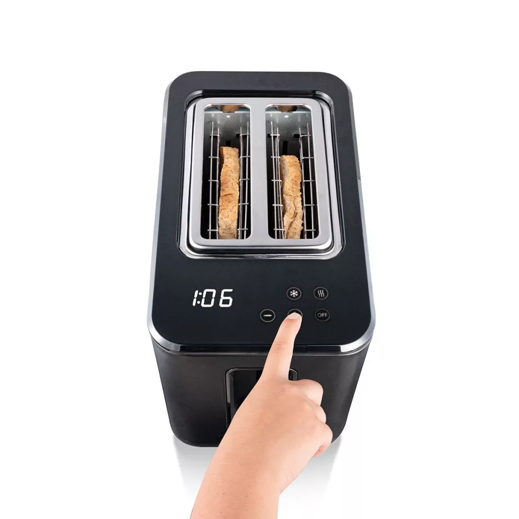 Blokkolásgátló rendszer: A rejtett emelőgomb megakadályozza, hogy a kenyérpirító véletlenül bekapcsolódjon