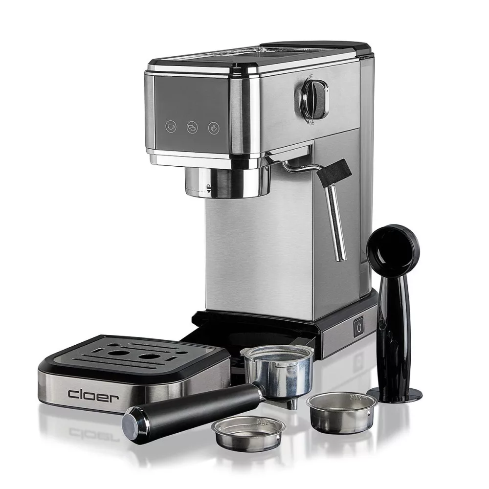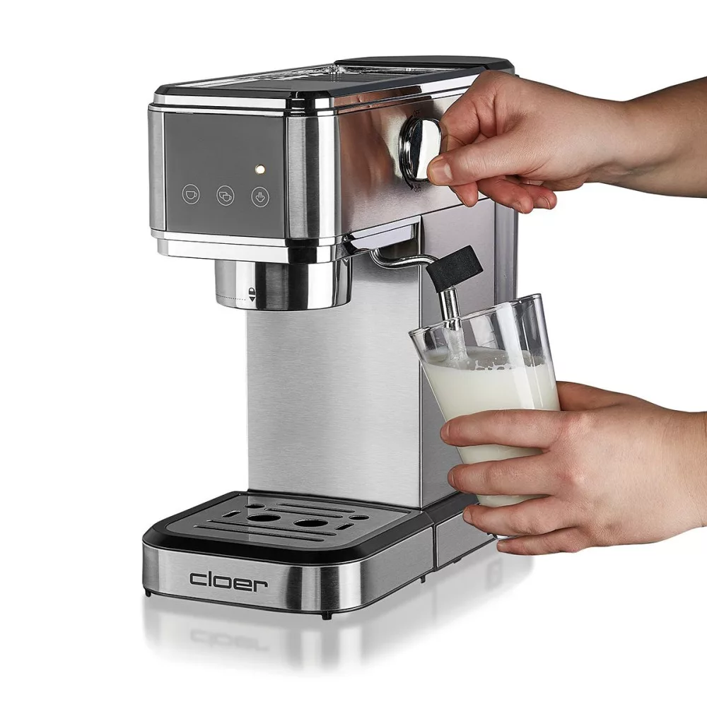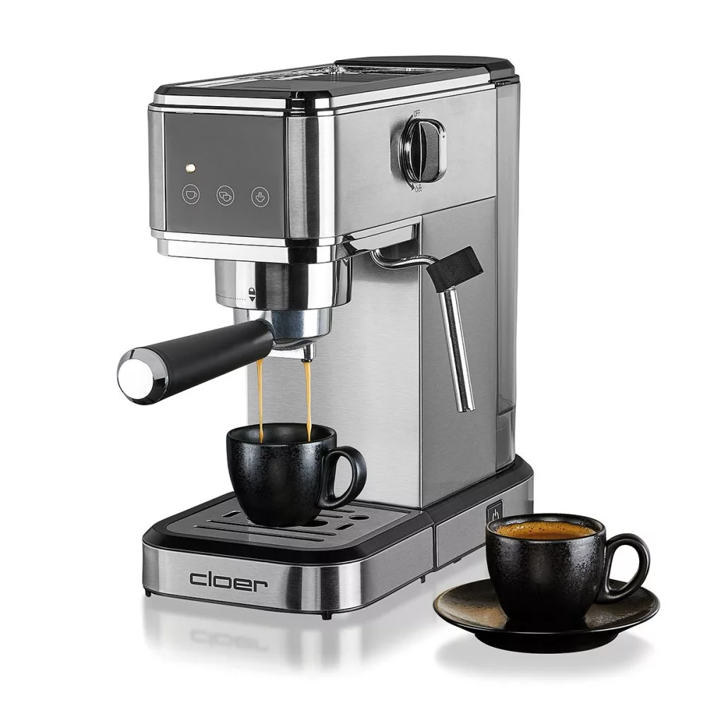 Az új Cloer 5829 eszpresszógép – igényes kávérajongóknak. Ez a kiváló minőségű kávéfőzőgép eszpresszóhoz, cappuccinohoz vagy latte macchiato-hoz ötvözi a modern dizájnt lenyűgöző funkcionalitással.