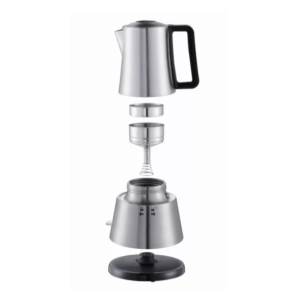 A letisztult forma, rozsdamentes acél ház, kábelmentes kiöntő, acél szűrő betét – mind mind a modern kávéfőzés fejleményei.