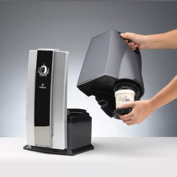 Csapvízzel is működtethető, minthogy beépített vízlágyító patronnal rendelkezik.