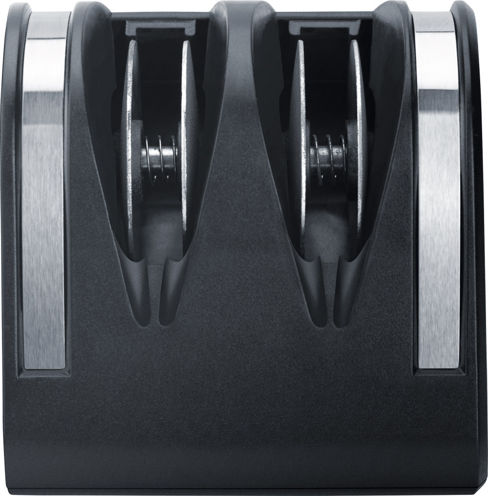 Helyezze a késélezőt a konyhapultra, hogy mindig kéznél legyen. Elegáns rozsdamenetes acélházas késélező, mely elektromos árammal működik.